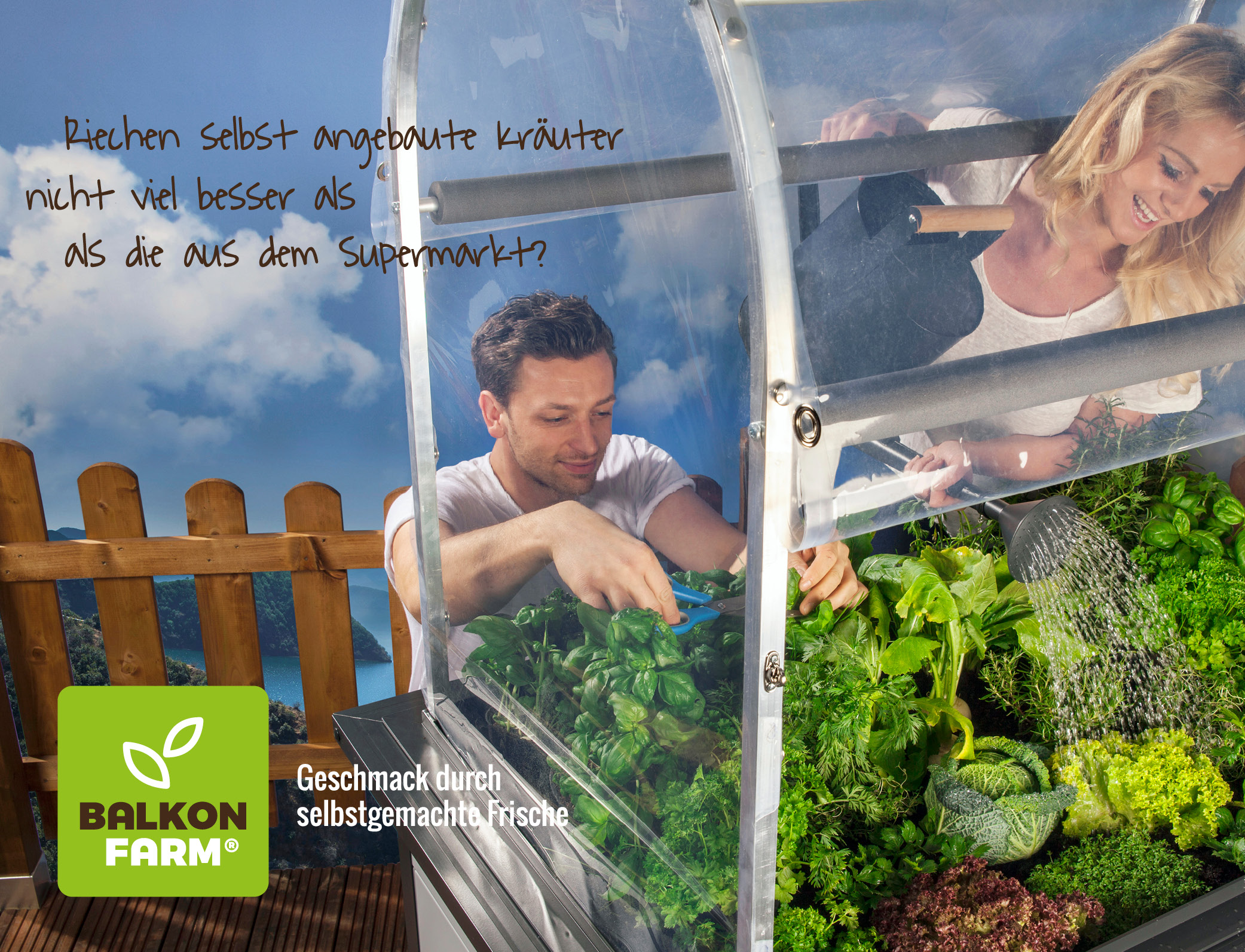 Der natürliche Geschmack durch selbstgemachte Frische bekam durch das Zusammenspiel von Wort-Bildmarke, Claim und Bildwelt ein begehrliches Gesicht. Da die BALKON FARM neu am Markt eingeführt wurde, stand im Fokus der strategischen Kommunikation die Etablierung des Corporate Images. Die Zielgruppe wird somit über einen Webauftritt, Imagebroschüre und weitere Printprodukte, SocialMedia-Kanäle sowie Merchandising-Artikel angesprochen. Die Teilnahmen an Messen und Events steigert die Sichtbarkeit, um Interessenten direkt abzuholen und den Vertriebsweg des Onlineshops zu stärken.
